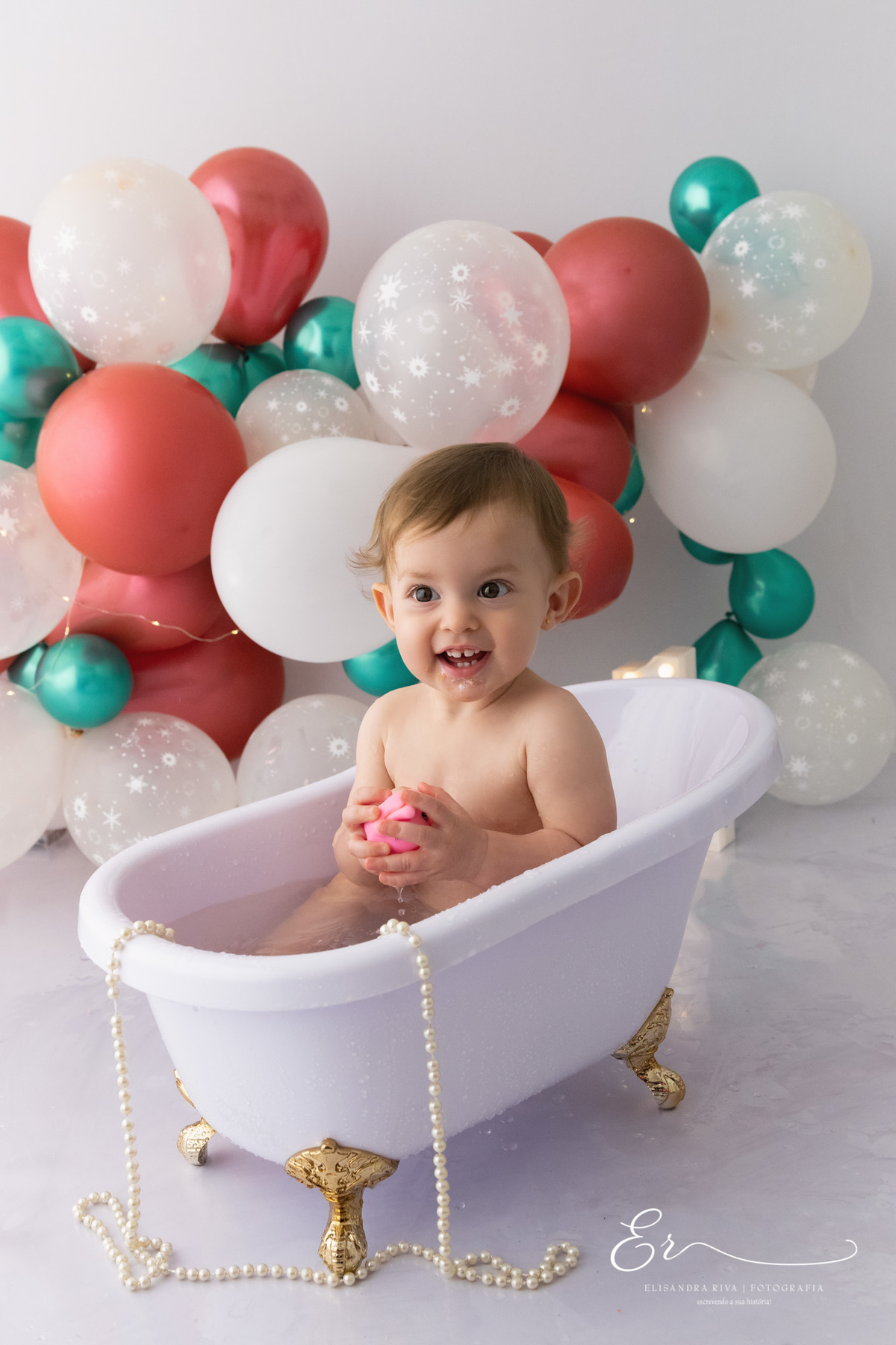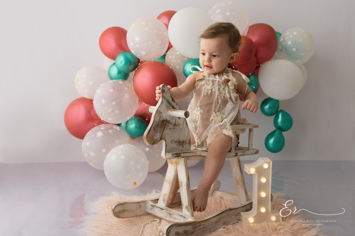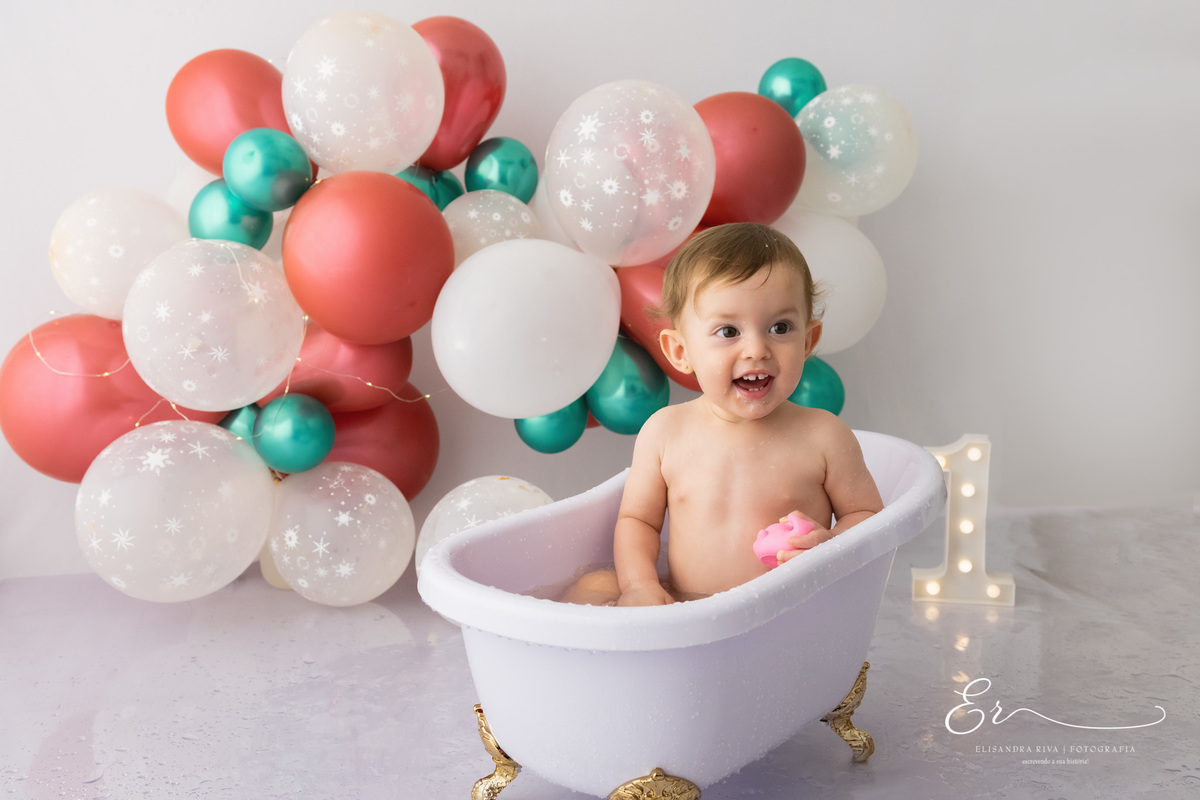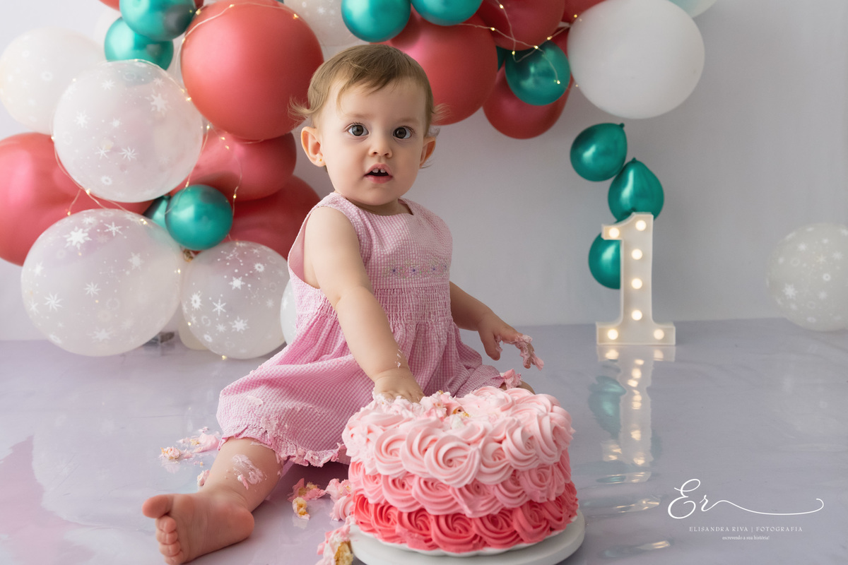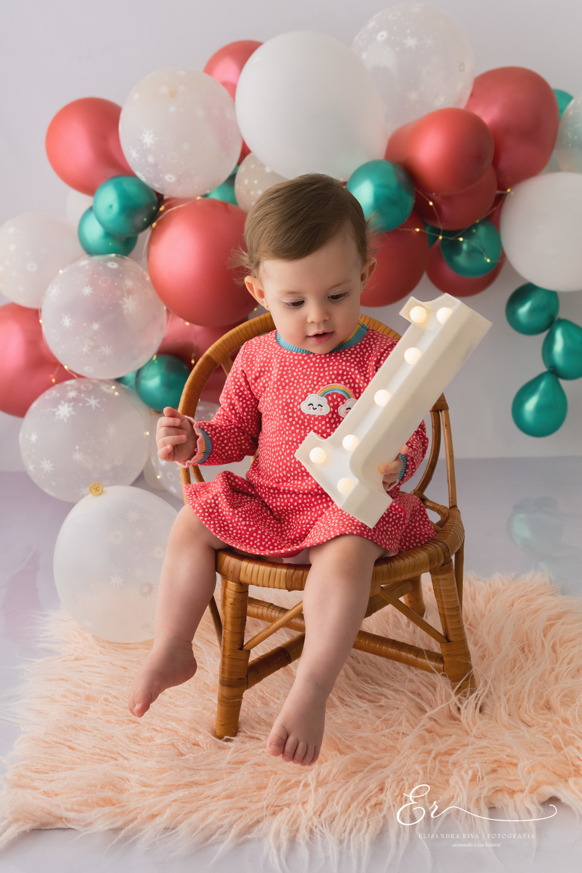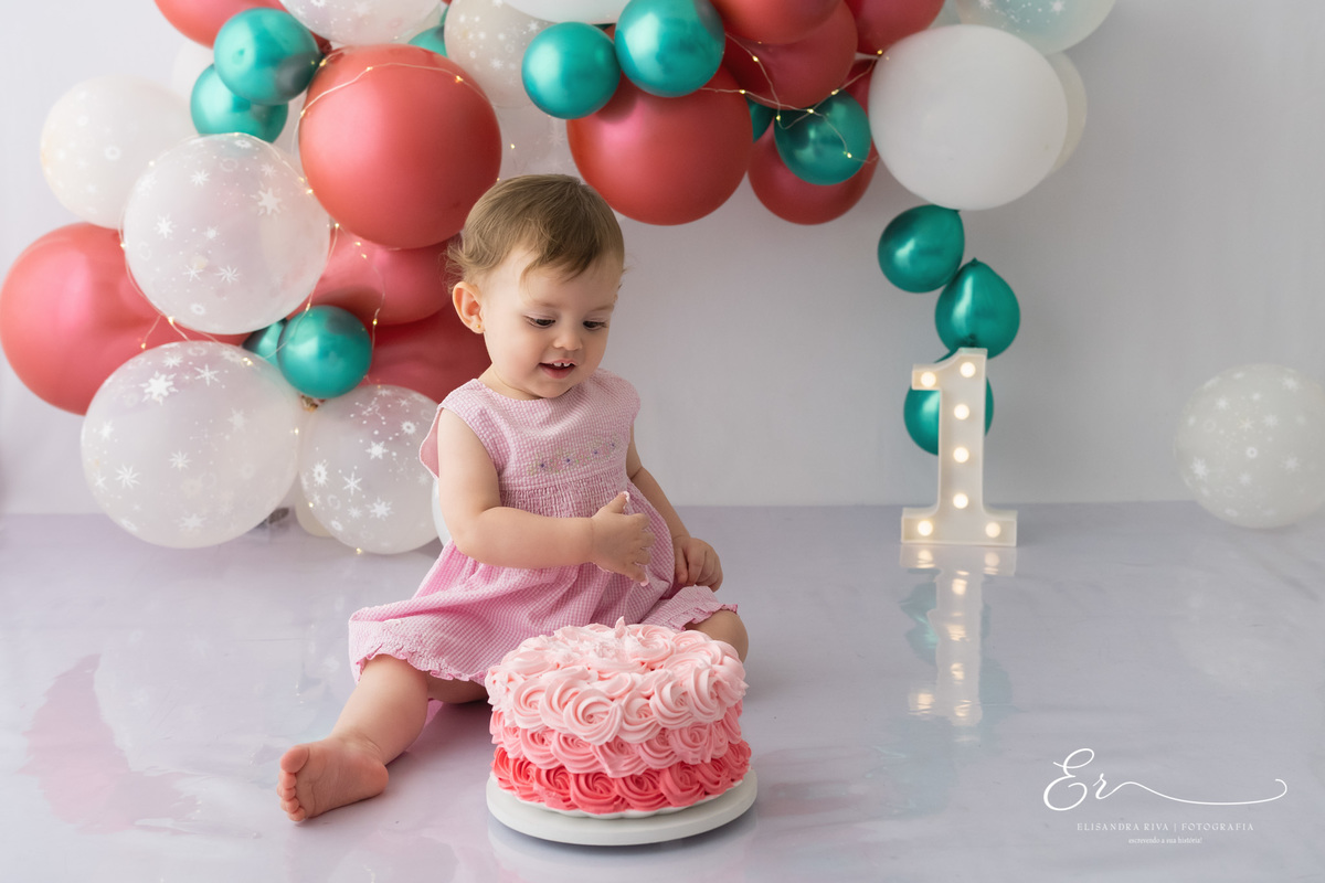 A sessão de cake smash é feita para comemorar o 12 mês de vida do bebê.